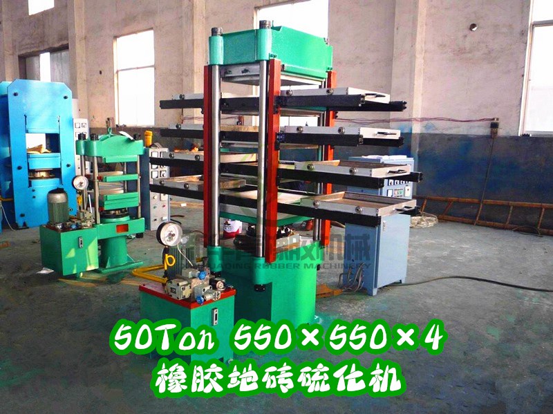 本机是制造橡胶地砖的专用平板硫化机,每层配置两套模具,轮番硫化,可以有效提高生产效率,同时配置手动推拉模机构,操作更加方便。本机功能完善、结构合理,具有自动开模、自动排气、自动补压、自动控温、自动计时、计时报警等功能,热板表面温度均匀,控温精确直观,保压稳定可靠,操作安全方便。使用本机能保证产品质量,获得显著的经济效益。